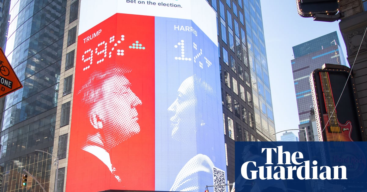 Gambling on the outcome of the presidential election became legal in the US at the start of October after decades of prohibition, becoming a new type of pre-election poll. Online prediction markets such as Kalshi and Polymarket accepted billions of dollars in wagers on the outcome, with their users favoring Donald Trump with a 70% chance of beating Kamala Harris, out of sync with mainstream polls. Trump’s camp trumpeted the predictions.